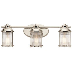 Ashland Bay offers a nautical feel with this 3-light vanity. For a vintage inspired look, polished nickel accentuates the beautiful clear seeded glass. To complete the look, optional vintage-style bulbs shine brightly through. For an added ambiance, nothing compares to Ashland Bay.